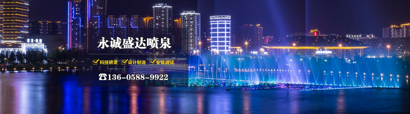 永誠(chéng)盛達(dá)環(huán)保工程有限公司是一家專(zhuān)業(yè)從事噴泉設(shè)計(jì)、噴泉施工、噴泉安裝、噴泉改造、噴泉維保的公司。我公司噴泉種類(lèi)涵蓋:音樂(lè)噴泉、旱地噴泉、超高噴泉、漂浮噴泉、雕塑?chē)娙⑺浑娪暗雀黝?lèi)噴泉。從噴泉設(shè)備到工程施工,我們都精益求精,力求為每一個(gè)客戶(hù)打造放心的噴泉工程,我們的噴泉案例遍布全國(guó),如果您有需求,請(qǐng)打電話咨詢(xún)離您近的我們案例進(jìn)行考察。期待與您合作!